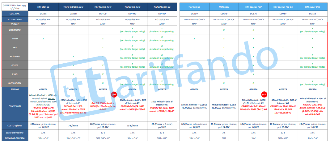 Ma non perdiamoci in chiacchiere e riassumiamo brevemente il meglio delle offerte winback di TIM in partenza il 2 Luglio 2018 e fino a data non nota.