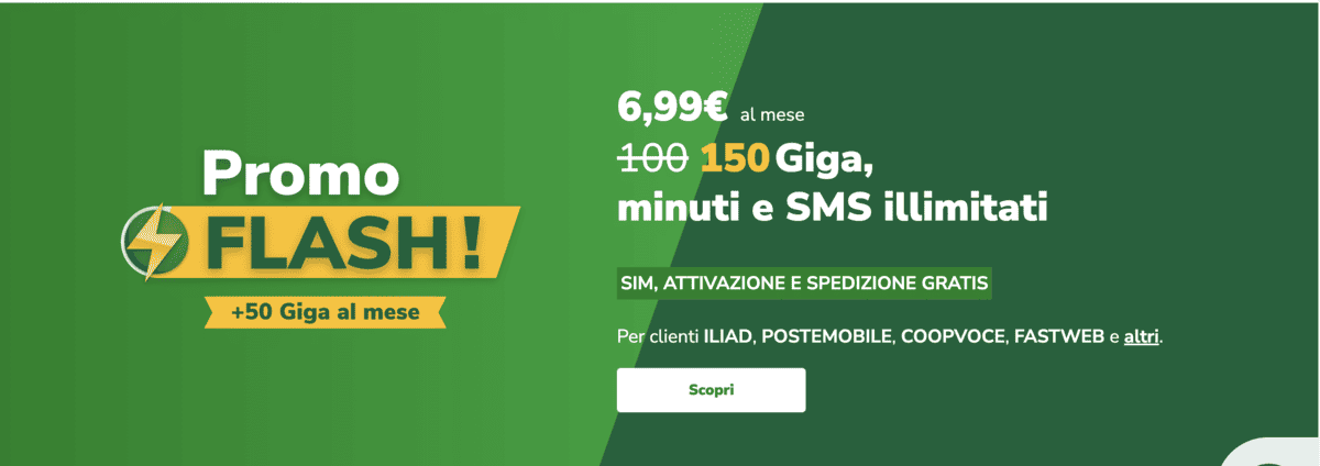 Continua la guerra tra Very Mobile e i soliti iliad e principali gestori virtuali: il gestore Made in WindTre infatti propone ora FLASH, una promo con ben 150GB con minuti ed SMS illimitati, il tutto ad un superprezzo, 6.99€ al mese.