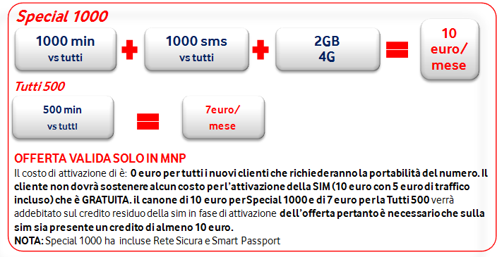I clienti che potranno attivare una delle due offerte, saranno contattati via SMS e dovranno effettuare la portabilità in un negozio Vodafone entro i termini prestabili e indicati nella comunicazione ricevuta. La portabilità e la nuova SIM sono totalmente gratis. Il canone mensile sarà però scalato dal credito, sarà quindi necessaria una ricarica da almeno 5€ in entrambi i casi, visto che la SIM sarà consegnata con 5€ in omaggio.