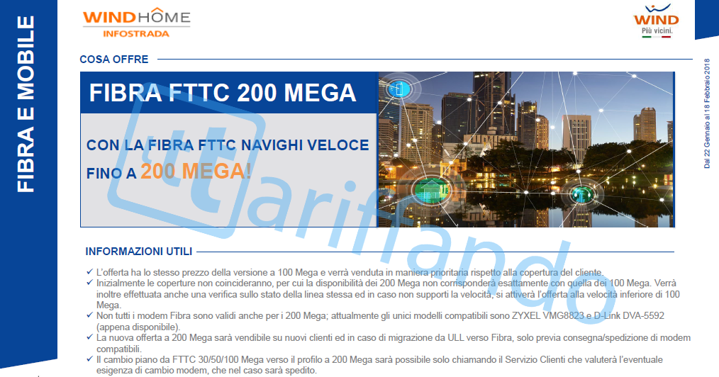 Da Lunedì 22 Gennaio la Fibra di Wind Home sarà abilitata ai 200 Mega in FTTC allo stesso prezzo della 100 Mega