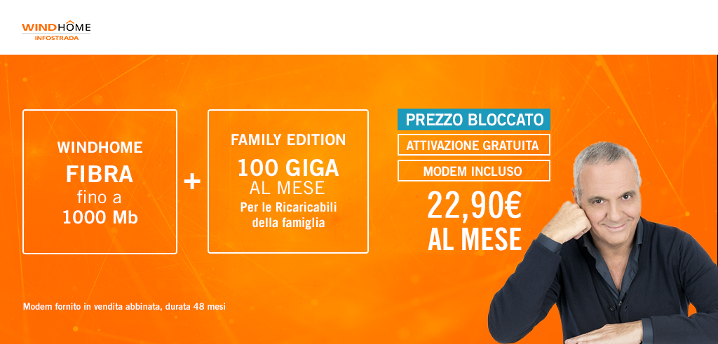 Wind Home torna all’attacco e ripropone la sua offerta Fibra a 22,90€ al mese per sempre: include il modem, l’attivazione e 100GB per le ricaricabili della famiglia