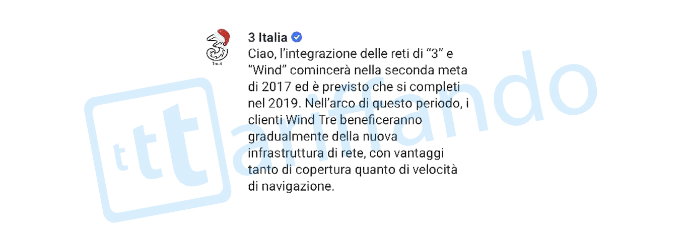 Con la nascita di Wind Tre non ci saranno, almeno prossimamente, particolari variazioni per quanto concerne il Roaming nazionale a cui la maggior parte dei clienti H3G è abituata. L’integrazione fisica delle due reti comincerà nella seconda metà del 2017 e verrà ultimata nel corso del 2019, salvo sorprese; in questo periodo tutti i clienti, chi prima, chi dopo, potranno usufruire gradualmente delle nuove infrastrutture, che porteranno vantaggi sia dal punto di vista della copertura sia della velocità di navigazione.