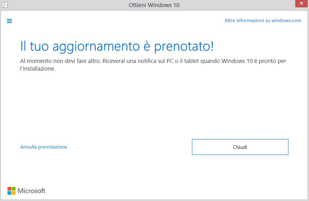 Ve ne avevamo già parlato all’interno della nostra pagina Facebook, la mattina del 1 Giugno 2015 moltissimi utenti, (tra cui alcuni di noi Microsoft users della redazione) si sono svegliati e hanno avuto la piacevolissima sorpresa, accendendo il loro PC, di notare una piccola icona all’interno della barra delle applicazioni. Cliccandoci poi su, è apparsa la possibilità di prenotare in modo completamente gratuito l’aggiornamento del nuovo sistema operativo in versione completa di Microsoft, Windows 10!