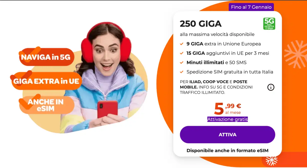 L’offerta è disponibile sia su SIM fisica tradizionale che su eSIM.