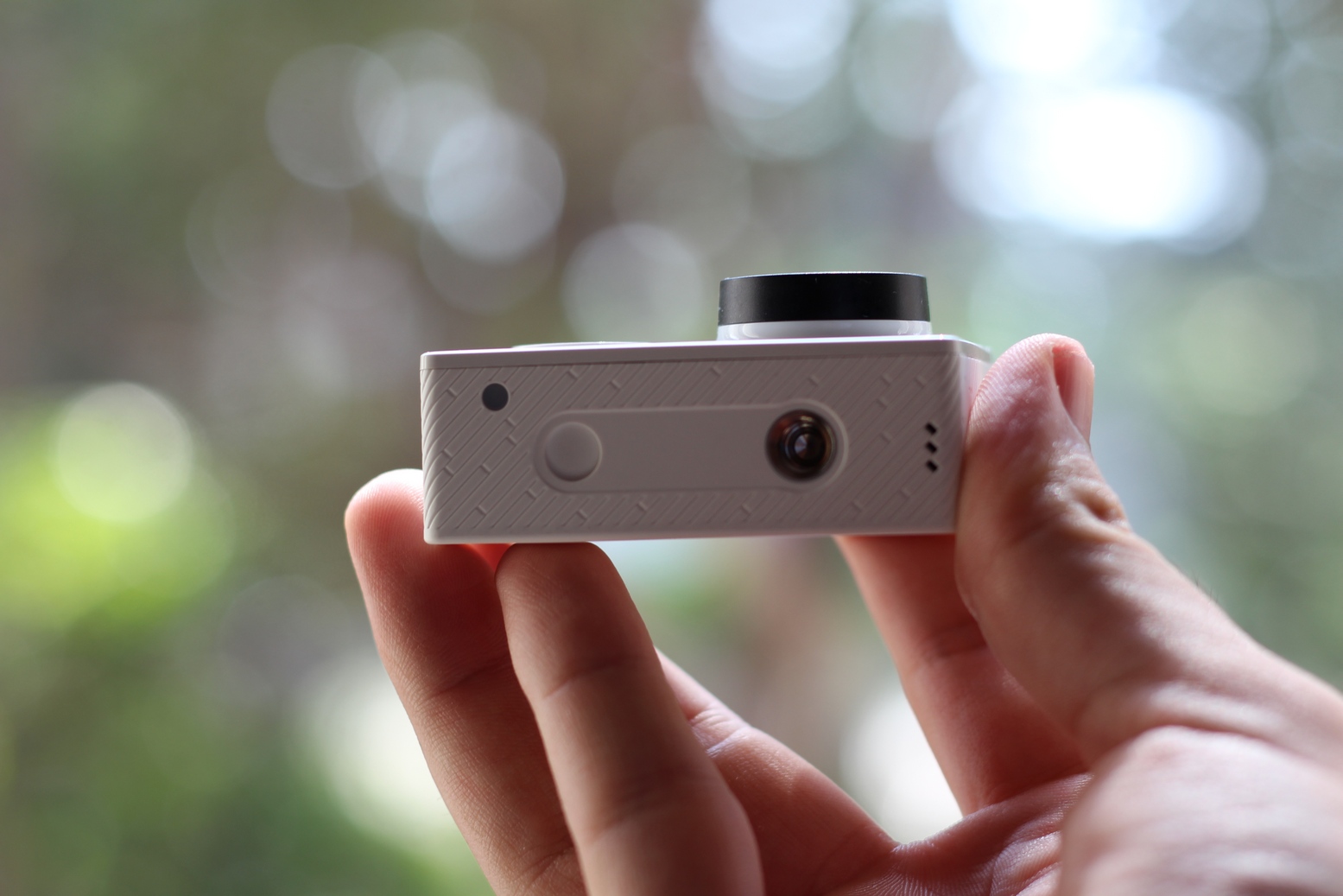 COSTRUZIONE: La Xiaomi Yi Camera è costruita davvero bene, compatta, piccola, pesante solo 70grammi. E’ “grande” 60.4mm×42mm×21.2mm, disponibile nella colorazione bianca o verde/gialla. La costruzione in policarbonato è resistente. Ci è entrata un pò d’acqua marina all’interno della custodia waterproof (per nostro errore, acquistata a parte) e non è accaduto nulla alla action cam. Ovviamente non vi consigliamo assolutamente di provarci, ma siamo rimasti stupidi piacevolmente di questo piccolo imprevisto. Si sente purtroppo la mancanza di un display.