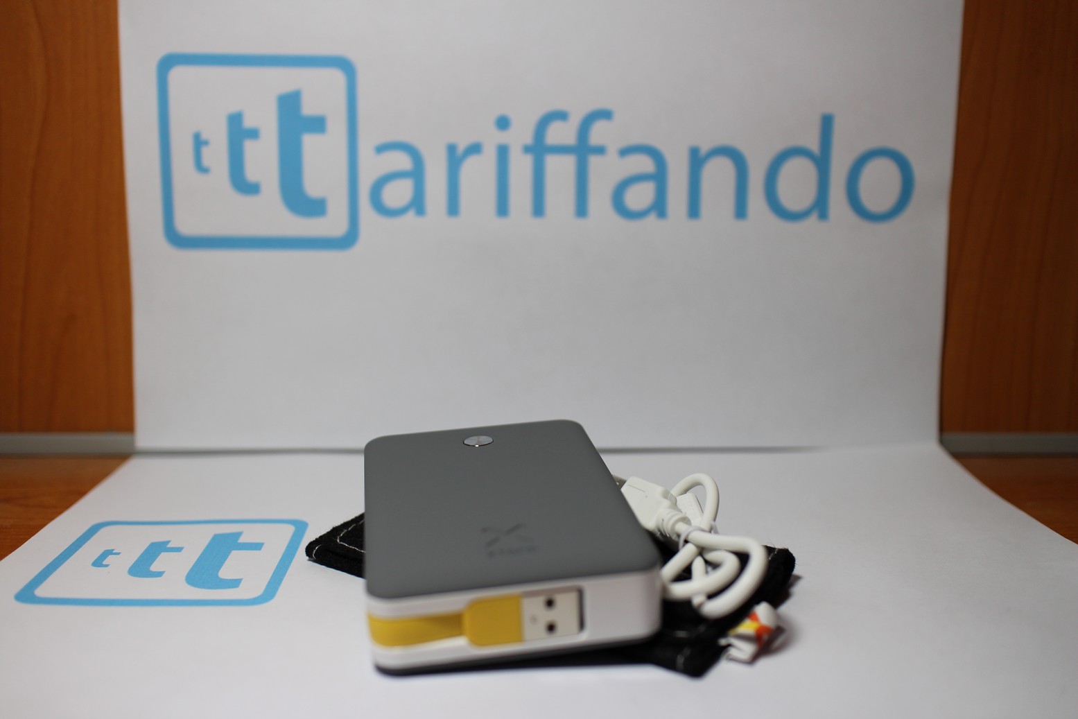 COSTRUZIONE Esteticamente si presenta solida e di qualità sotto ogni aspetto, il corpo della Xtorm XB101 è rivestito in gomma soffice al tatto di colore grigio, i bordi sono invece di colore bianco con plastica rigida anti usura – dimenioni 9,7x 6,5x 2,2cm e 190g di peso. Sul suo corpo presente il pulsante di accensione in grigio metallizzato e molto ben in armonia con il design, 4 LED che indicano lo stato di carica, due uscite USB da ben 2,5A un ingresso Micro USB per la ricarica e, un “cavo volante” di colore giallo e a scomparsa anch’esso per ricaricare la powerbank. Ci sarebbe piaciuto molto di più se il cavo fosse stato dedicato alla ricarica dei dispositivi.